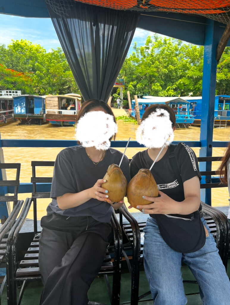 帰りのボートでは、採れたてのココナッツジュースが。正直「クセがありそう」と思っていたけれど、実際に飲んだらすっきり甘くて美味しい!予想を裏切られてうれしかった。